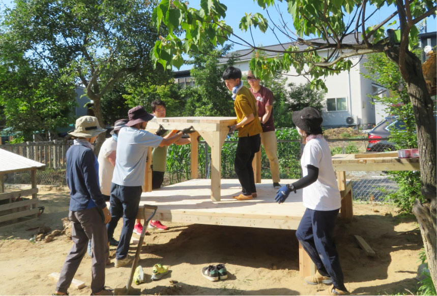 子どもが楽しいと大人もうれしい。大人が楽しいと子どもも笑顔になる。そんな循環がみんなの居場所になります。園での様々な場面に保護者の皆さんに積極的に参加してもらっています。園庭の遊具を作ったり、お祭りをいっしょに作ったりとあたたかな人とのつながりで子育てがもっと楽しくなりますよ。